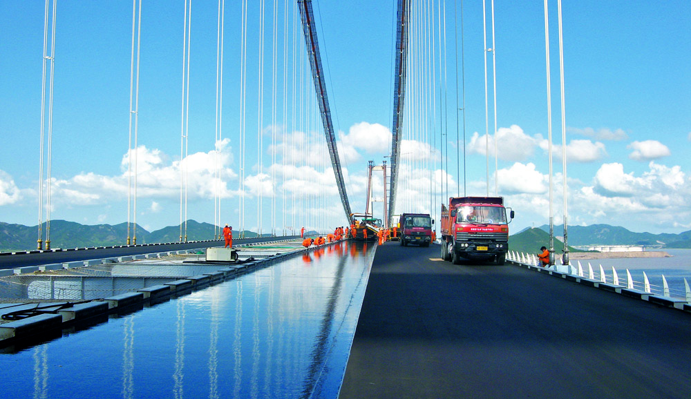 從中國首座環氧瀝青混凝土鋪裝結構的南京長江二橋開始,公司實施多座大型橋梁的環氧瀝青混凝土鋪裝施工。公司編制了國家級工法一《環氧瀝青混凝土鋼橋面鋪裝施工工法》系統性規范國內同類型鋪裝施工。公司站在科技前沿,結合中國氣候條件、車流、車載等綜合因素,形成一套先進的復合澆注式瀝青混凝土鋼橋面鋪裝施工工藝,獲得國內外專家贊譽,并將復合澆注式瀝青混凝土鋪裝應用于南京長江四橋。